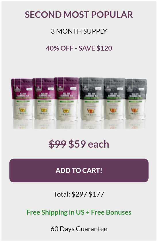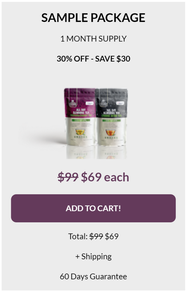 I’m so confident you’ll enjoy life-changing results with our All Day Slimming Tea that I’m prepared to back up your investment with a 100% satisfaction guarantee for the next 60 days (minus our shipping cost). Start drinking our All Day Slimming Tea when you receive it at your home in a few days. You should notice your energy, digestion and metabolism improving from the very first time you take it. This is the first sign it’s working. Next, you’ll feel how you’ll better control your cravings and make your weight loss journey a lot easier and more enjoyable. Your order is fully secure, encrypted and safe. It’s also covered by a rock solid 60 day guarantee. If at any point during the next 2 months following your order, you are less than satisfied with your results, contact us using the links at the footer of this page and we will refund your order right away.